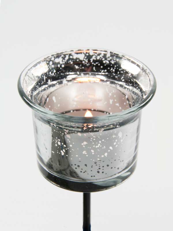 Theelichthouder glas – zilver gevlekt – op prikker – per stuk