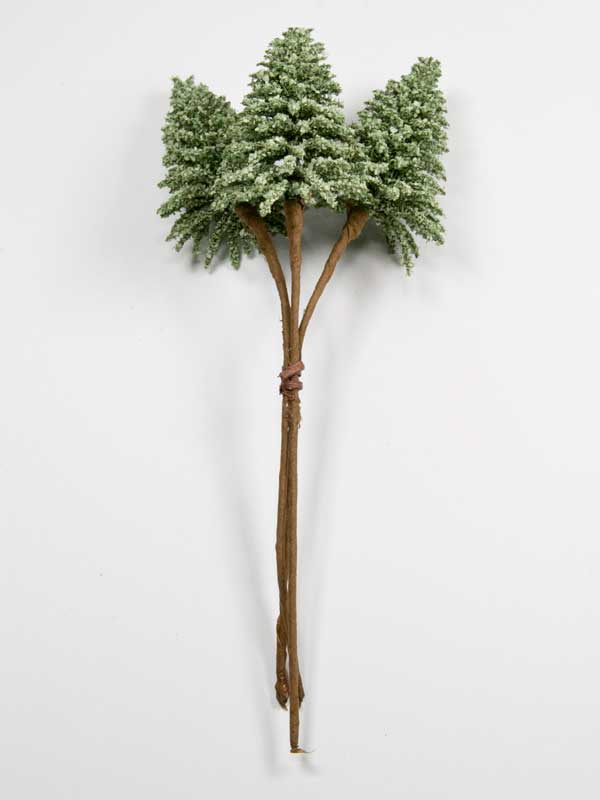 Een leuk miniatuur boompje op een draad, zodat je het makkelijk kan verwerken in een bloemstukje voor kerst. Ook kan je het heel goed gebruiken voor een maquette van een kerstlandschap.