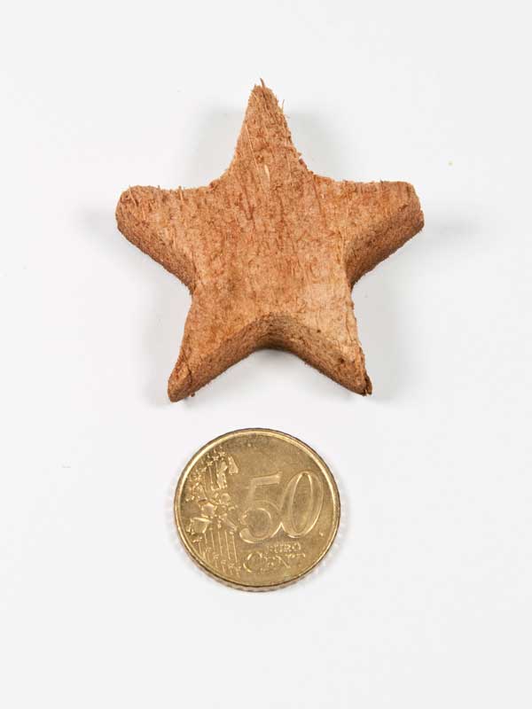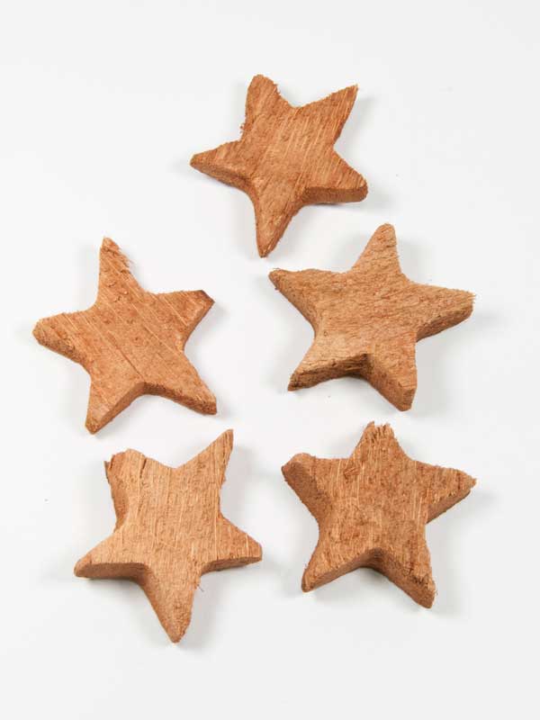 Deze sterren zijn uit de harde rand van de kokosnoot gezaagd. Leuke en decoratief afwisselende sterren.